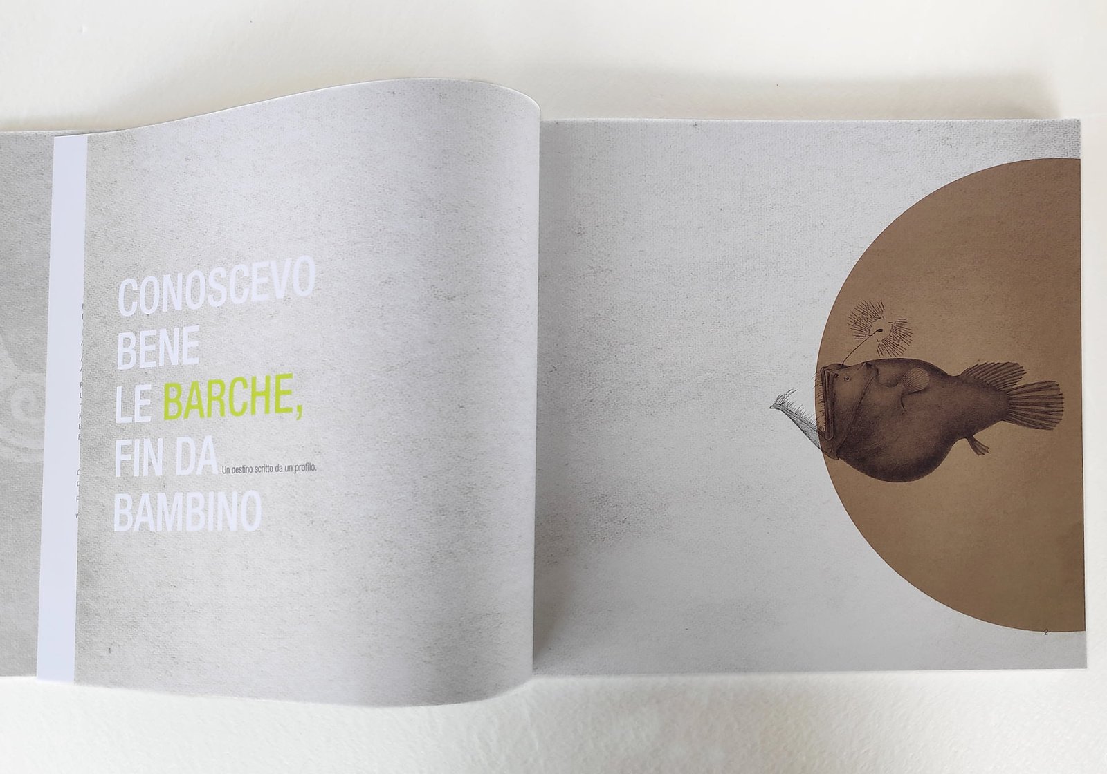 Il concept grafico ruota intorno alla fusione della contemporaneità e dell’heritage del cantiere con un impaginato e un art direction che vede il sovrapporsi di illustrazioni dal sapore antico alle immagini del talentuoso Alberto Cocchi, scatti da reportage – stampati su carta uso mano – miscelati e contrapposti agli Yachts in versione patinata lucidissima: un’innovativa idea di cartotecnica, che sottolinea il luminoso passato e l’acceso presente del cantiere.