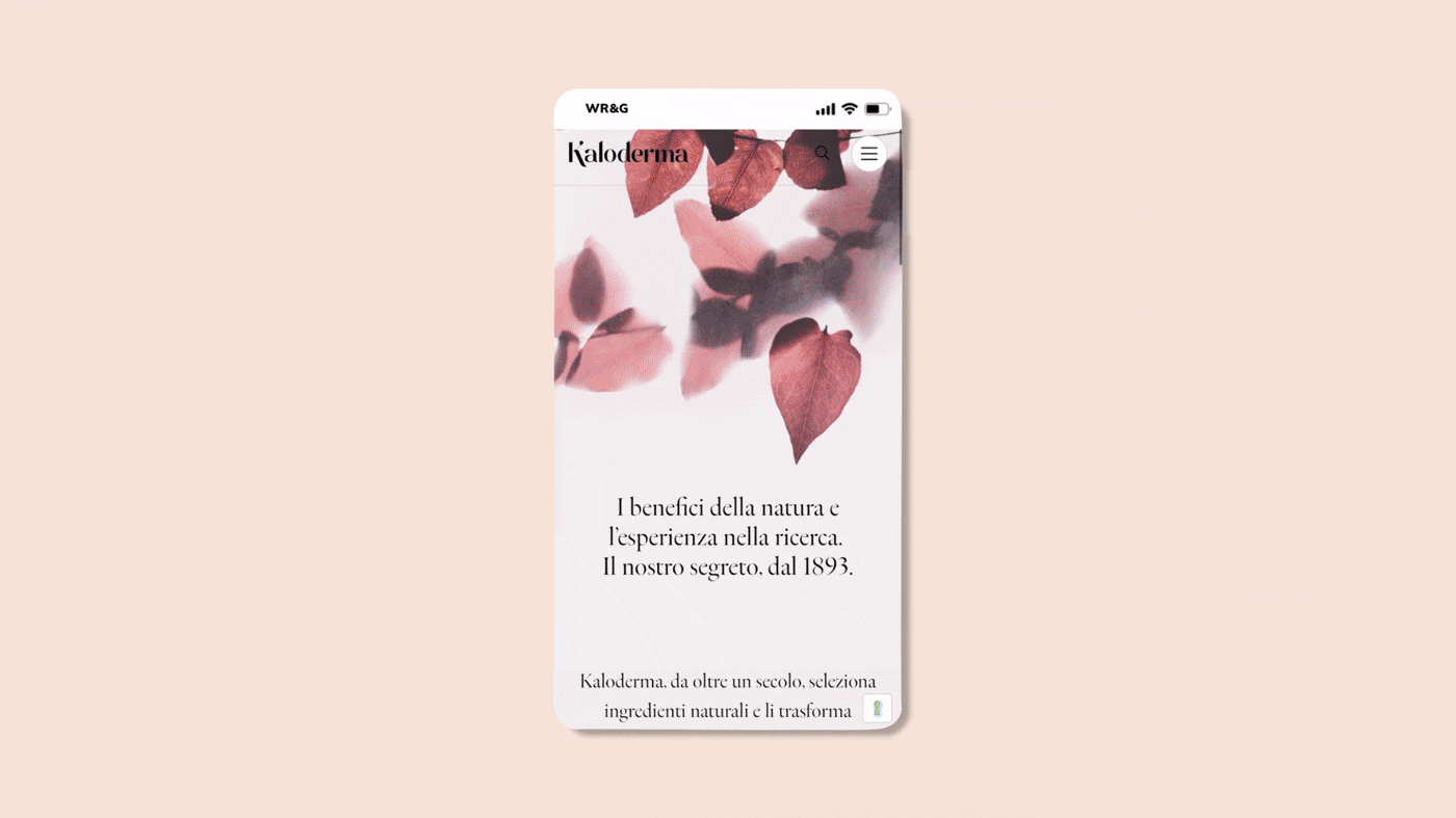 WR&G ha saputo interpretare e tradurre la visione di Kaloderma in un’interfaccia digitale coerente e coinvolgente. È stato realizzato un sito dal design contemporaneo ed essenziale, che presenta e valorizza l’offerta del brand, e che attira un’utenza attenta alla qualità e all’esperienza sensoriale quotidiana.
