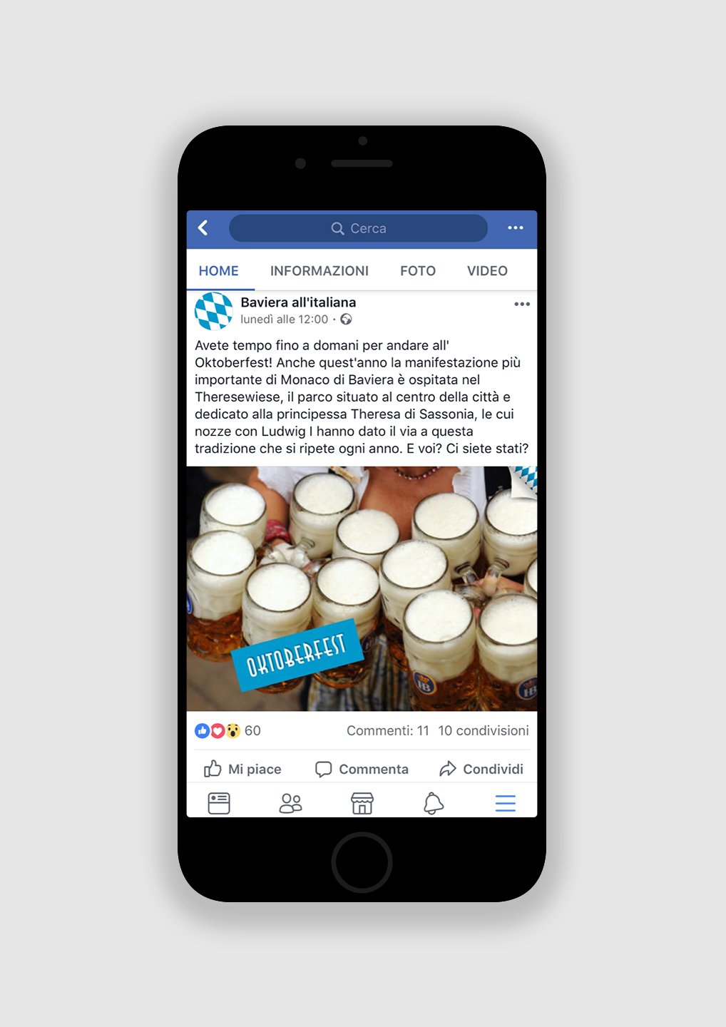 Come rendere noto il lavoro di Alp Bayern, il Ministero bavarese per la promozione dei prodotti e del territorio? Raccontando ad una nutrita community di appassionati di come la cultura bavarese e quella italiana si incontrano in cucina, tra gustosissime ricette, prodotti gastronomici tipici, curiosità e luoghi da scoprire. Tutto questo tramite una pagina Facebook con un piano editoriale articolato, a metà tra un ricettario e una guida turistica.