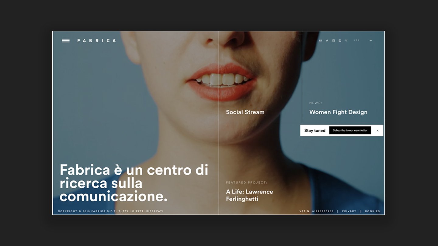 Fabrica, il centro di ricerca sulla comunicazione di Benetton Group, ha scelto White, Red & Green per riprogettare la propria presenza online. Dallo studio con i dipartimenti creativi dell’azienda, è nata un’esperienza completamente inedita volta ad enfatizzare i tantissimi progetti creativi che Fabrica intraprende ogni giorno nel mondo del design, dell’editoria e delle campagne sociali.