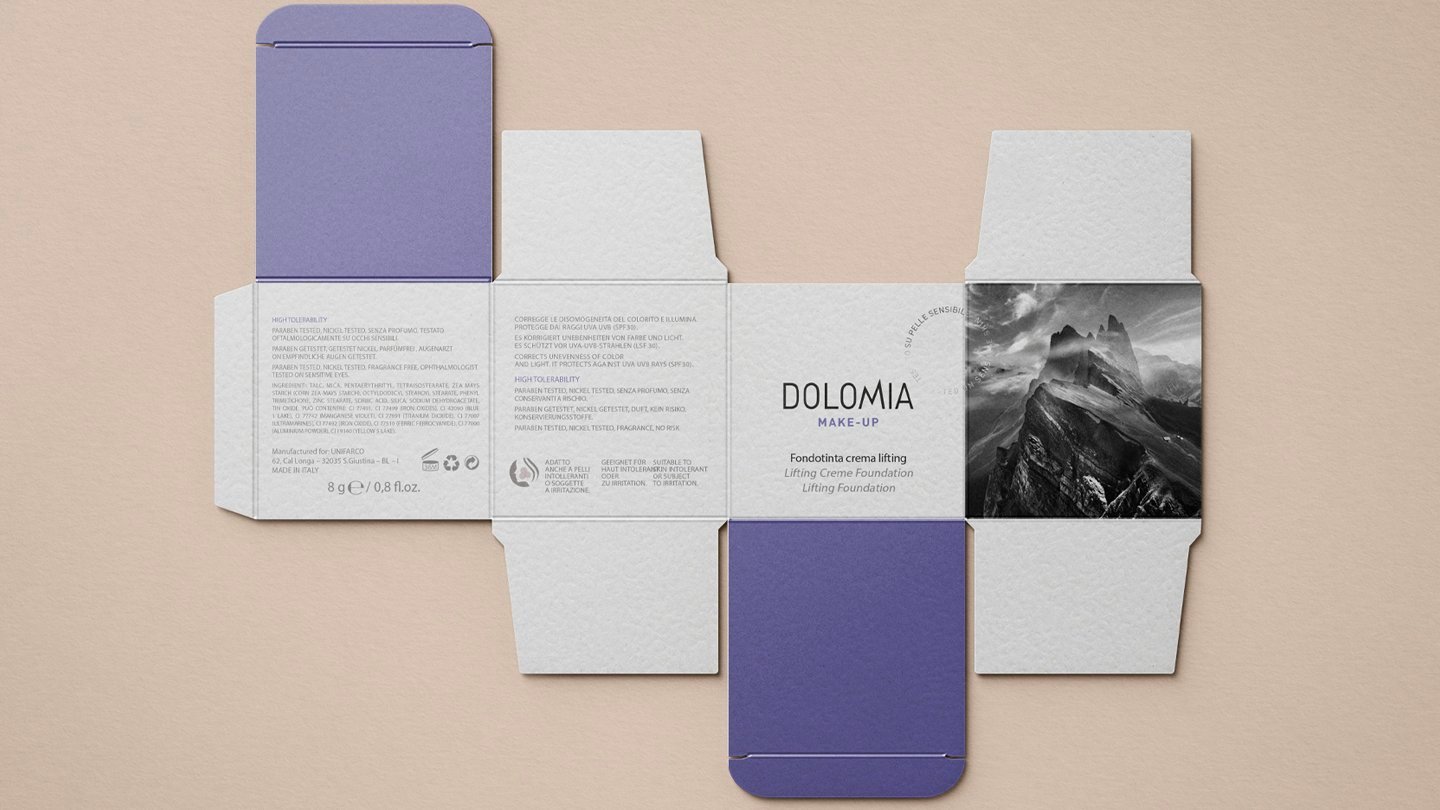 Dolomia, marchio del gruppo Unifarco, azienda bellunese con sede nel comprensorio delle Dolomiti, ha scelto White, Red & Green per il progetto di rilancio delle linee make-up e cosmesi, dedicate al canale farmaceutico. Dopo la rivisitazione del logotipo Dolomia con uno stile più attuale e legato al mondo beauty, dove la “M” diventa l’elemento caratterizzante legato alle Dolomiti, l’agenzia ha progettato il nuovo packaging della linea make-up.