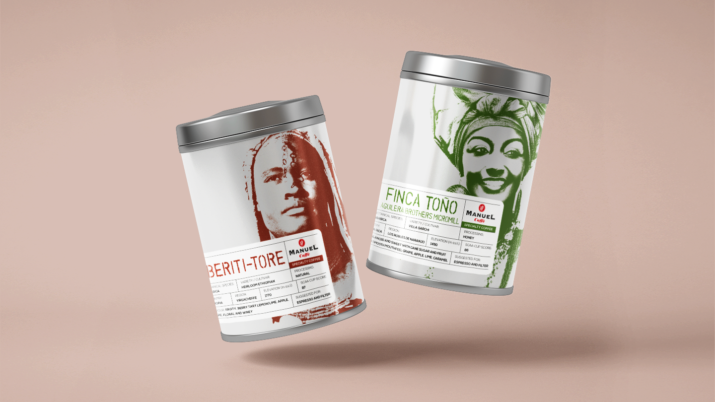 Manuel Caffè, storica azienda di Conegliano Veneto produttrice di caffè, ha affidato a White, Red & Green lo sviluppo dei pack di una delle sue linee più selezionate, gli Specialty Coffee. Monorigini preziose e ricercate che arrivano dalle più distintive aree del mondo: Ethiopia, Brasile, Guatemala, Honduras, e non solo.