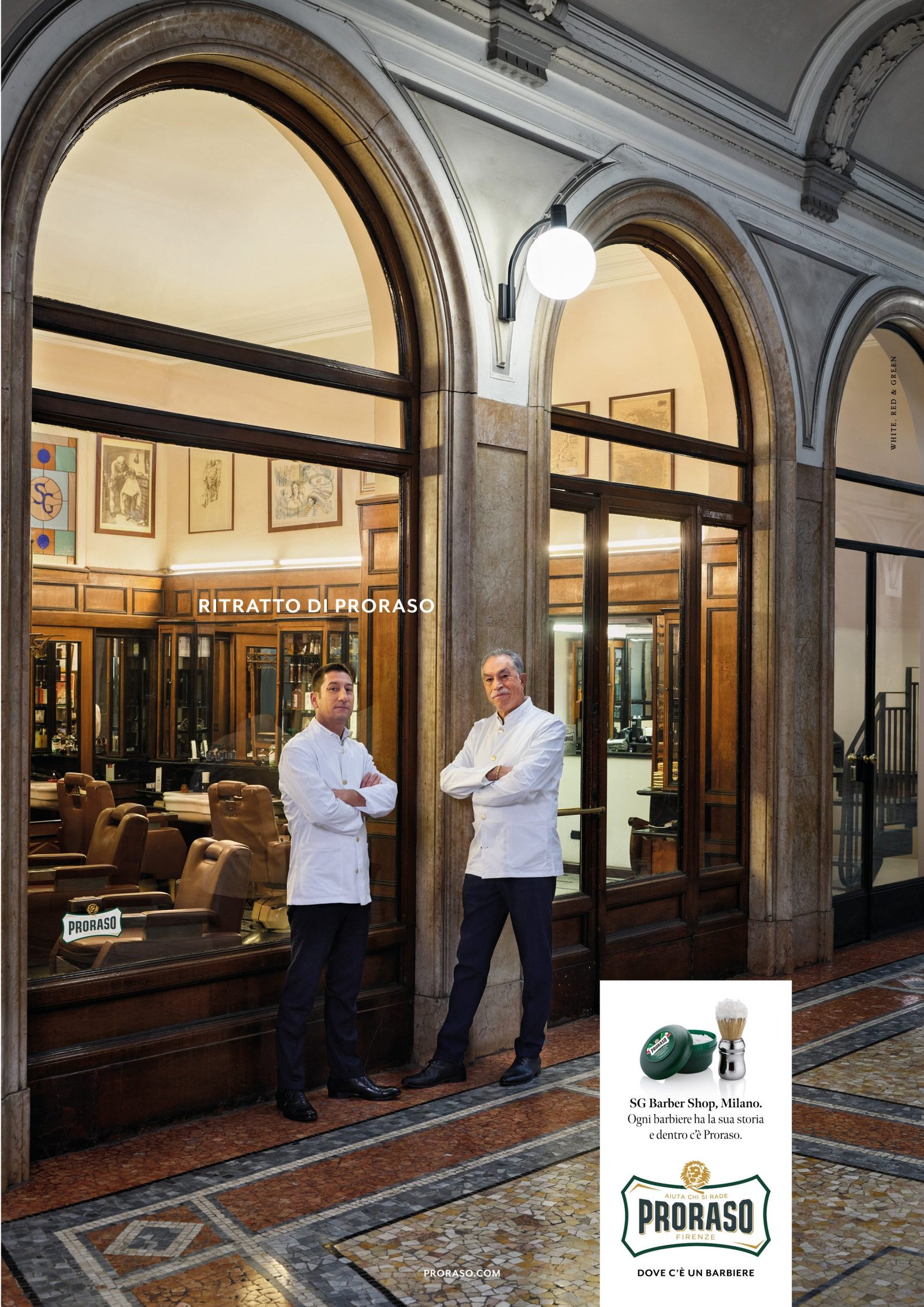 In un affascinante percorso tra paesi di charme e città d’arte, il video realizza una preziosa galleria di ritratti classici del barbiere in posa davanti alla vetrina del salone: un’immagine impressa nella nostra memoria storica, omaggio a un mestiere d’arte rifiorito grazie al lavoro di valorizzazione e promozione di Proraso.