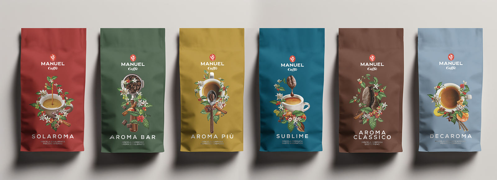 Da 50 anni Manuel Caffè realizza miscele raffinate di alta qualità e oggi è un’identità affermata che esporta prodotti innovativi in tanti paesi esteri. L’azienda si è affidata a White, Red & Green per creare un packaging distintivo che riuscisse a emergere rispetto ai concorrenti in un mercato ad alta competitività e veicolasse il corretto il posizionamento di una linea premium destinata a Ho.Re.Ca. e consumo domestico.