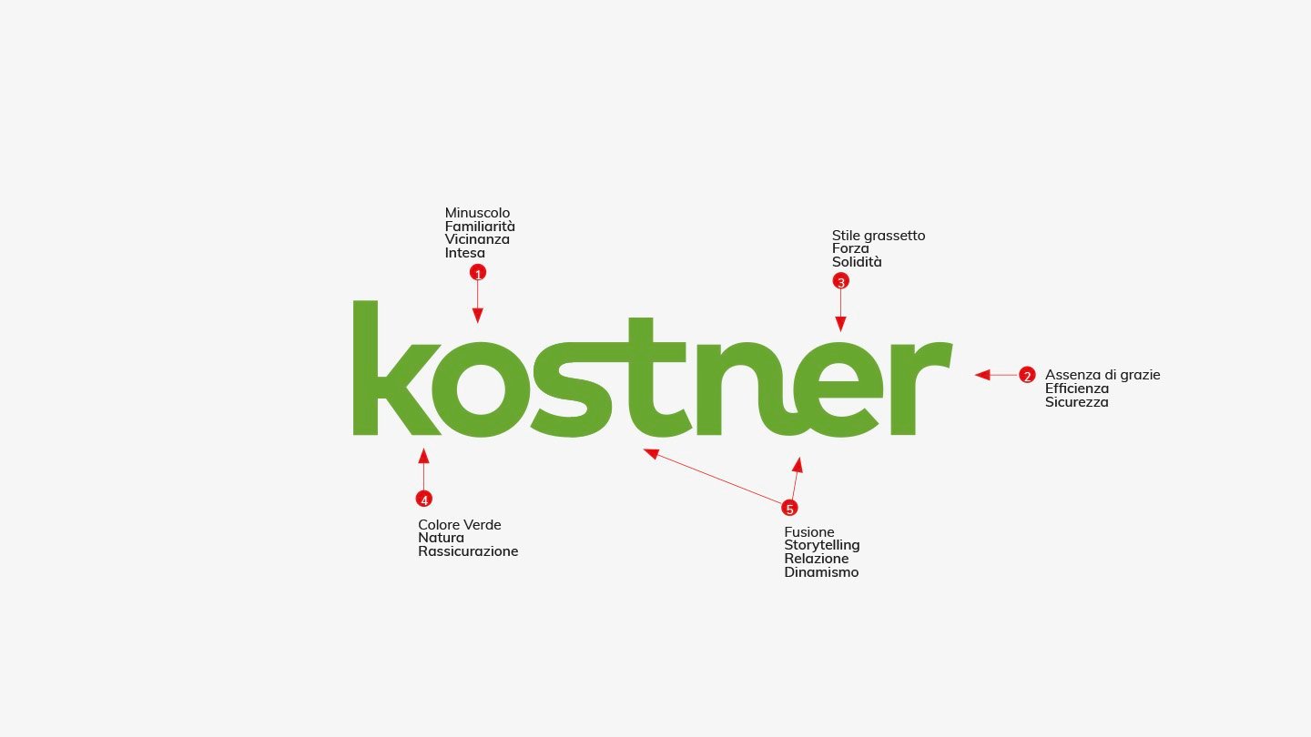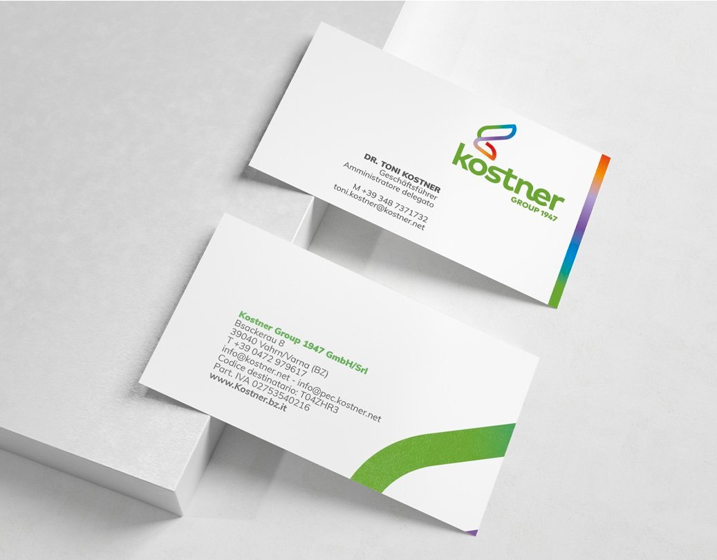 Per affrontare queste evoluzioni necessitava di un’immagine coordinata unica, forte e facilmente riconoscibile che racchiudesse il marchio principale Kostner Group e i loghi dedicati alle aree di business.