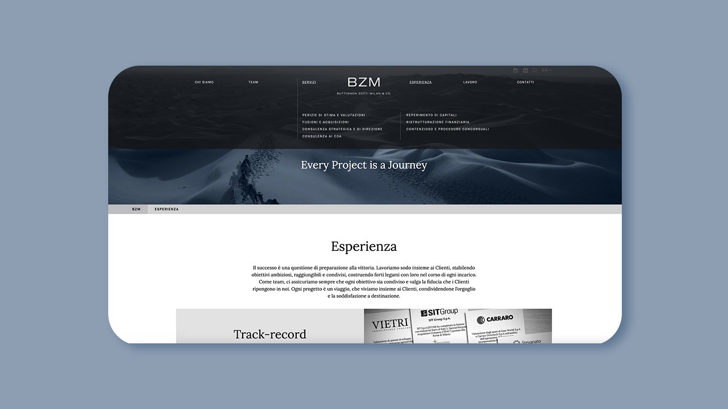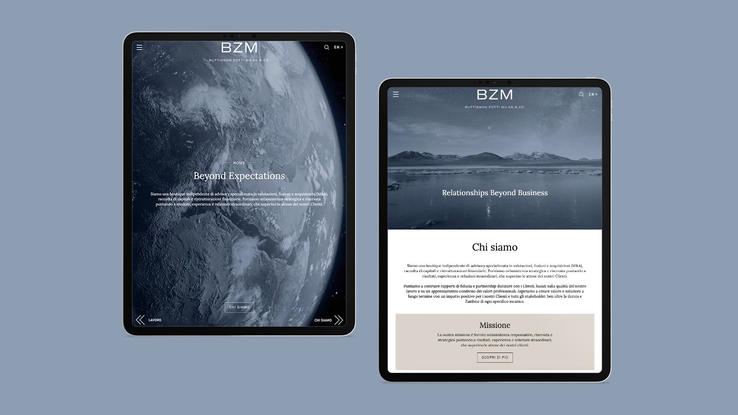 Come può l’attività di financial advisor uscire dai soliti schemi per avvicinarsi alle persone? Il progetto di redesign del sito di Buttignon Zotti Milan & Co. – boutique indipendente specializzata in valutazioni, fusioni e acquisizioni – si è basato su un concept forte e laterale proprio per rispondere a questa domanda.